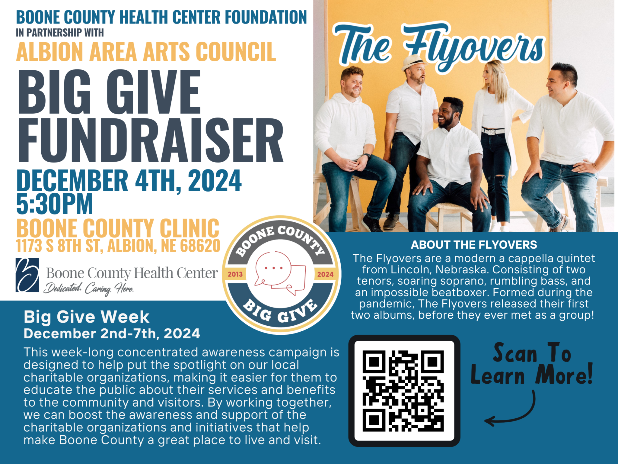 The Boone County Big Give is a week-long concentrated awareness campaign that spotlights local charitable organizations, like the Albion Area Arts Council. This charitable week is supported by the Boone County Foundation Fund. The mission of this week is to help support charitable organizations that help make Boone County a great place to live and visit.