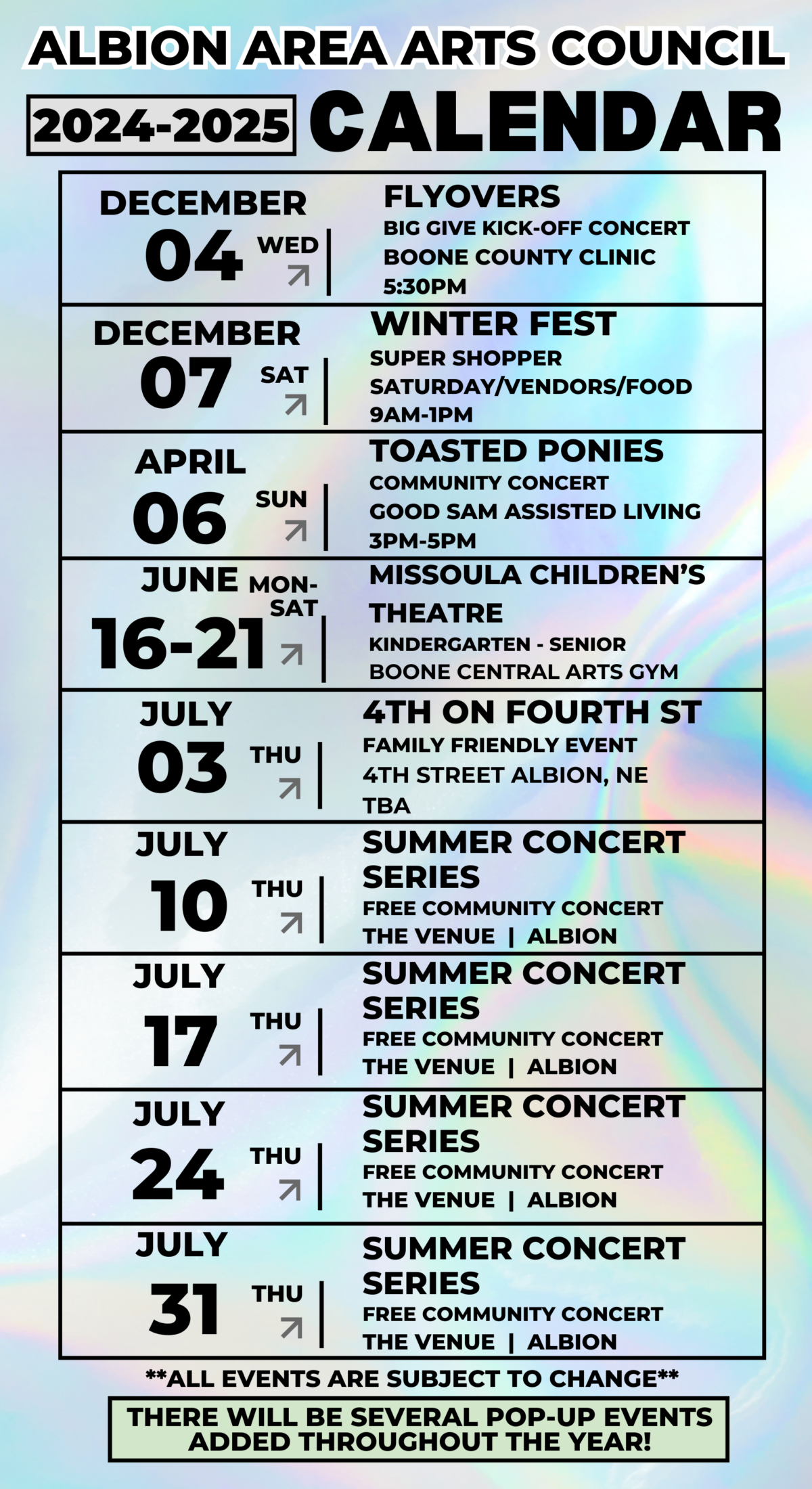 The Summer Concert Series is our most anticipated event of the year! Join us every Thursday in July at The Venue on 4th Street in Albion to enjoy a family-friendly concert.